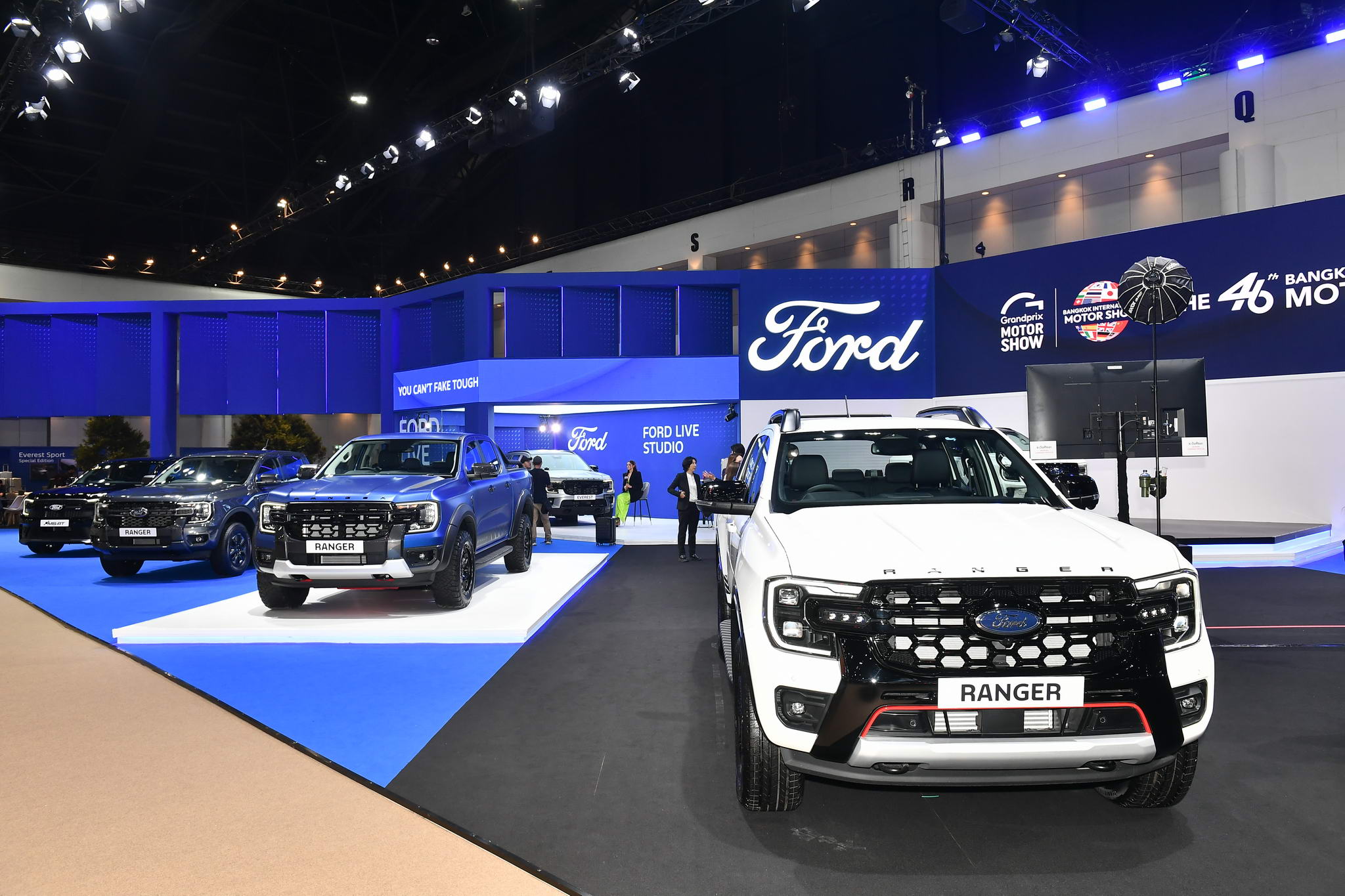 A bemutatón a Ford lenyűgöző, 4 ajtós 4×4 Ranger-kínálata is szerepel, amelyek mind a közúti, mind a terepen való használatra megtestesítik a keménységet. A csúcspontok közé tartozik a Ford Ranger Raptor , a Ford Performance DNA-val ellátott, végsőkig nagy teljesítményű pickup; a Ford Ranger Wildtrak , amelyet robusztus V6-os motor hajt; és a Ford Ranger Stormtrak , amelyet egyedi stílusa jellemez. A Ford Ranger Sport 4-ajtós 4×4-et a sokoldalúságra tervezték, terepes kalandokhoz és városi vezetéshez egyaránt alkalmas. Különleges ára 1 049 000 baht ( a normál 1 089 000 baht árhoz képest), és ingyenes első osztályú biztosítást tartalmaz.